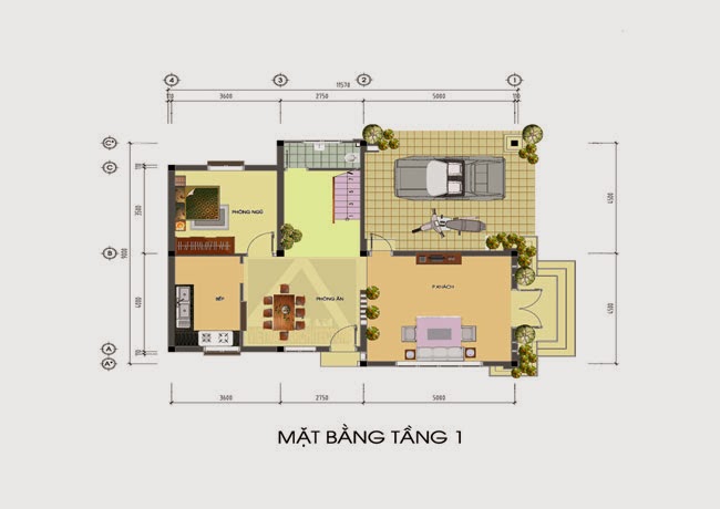- Tầng 1: Phòng khách + bếp + phòng ăn + 1 phòng ngủ + nhà vệ sinh