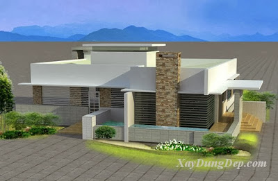 Biệt thự một tầng theo phong cách truyền thống hay hiện đại đều có vẻ đẹp riêng. Biệt thự hiện đại được thiết kế theo dáng dấp cách tân, đường nét khỏe khoắn, tự do. Dinh thự này dùng nhiều mảng khối, đường nét rõ ràng mang tính hình học. Vật liệu cũng được sử dụng mạnh dạn hơn biệt thự truyền thống như cửa kính, mái nhẹ, thép, gỗ ngoài trời, đá… phối hợp với nhau để tạo nên nét độc đáo.