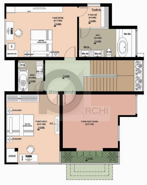 Phương án thiết kế mặt bằng bố trí đồ tầng 3