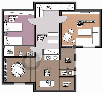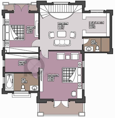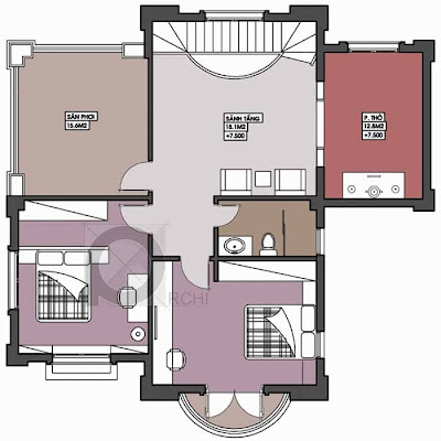 Phương án thiết kế mặt bằng bố trí đồ tầng áp mái - Biệt Thự Vincom Village 16x20m