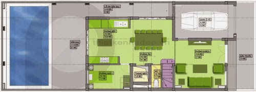Phương án thiết kế mặt bằng bố trí đồ tầng 2 - Biệt Thự 4 tầng 1 tum 7x21m