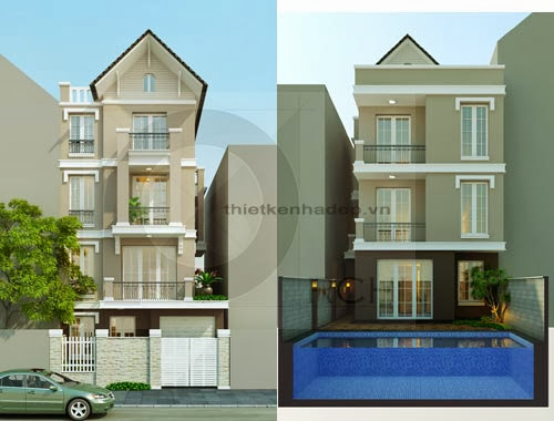 Phương án thiết kế mặt đứng biệt thự - Biệt Thự 4 tầng 1 tum 7x21m