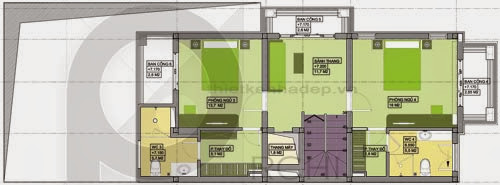 Phương án thiết kế mặt bằng bố trí đồ tầng 3 - Biệt Thự 4 tầng 1 tum 7x21m